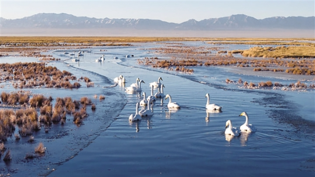 - 2025年11月14日【图片新闻】天鹅在阿克塞县阿伊纳乡苏干湖悠闲觅食