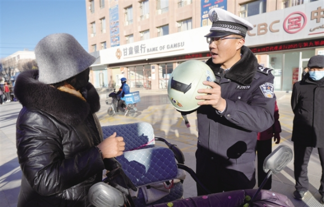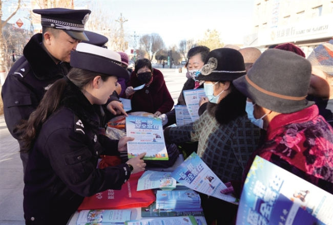 12月2日,阿克塞县公安局组织开展了“文明交通 礼行天下”主题宣传活动,通过向辖区居民宣传普及交通安全知识、道路交通法规、安全出行规范等,让文明交通理念深度传递,凝聚起全民共守交规、护航平安出行的浓厚氛围。马 璐 摄